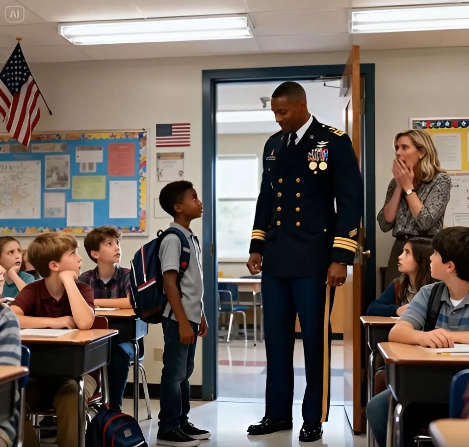 Ve dveřích stál vysoký muž v dokonale upravené vojenské uniformě. Světlo z chodby obkreslovalo jeho postavu téměř jako ve filmové scéně. Na jeho hrudi se leskl odznak a jeho pohled byl klidný, jistý a autoritativní.
