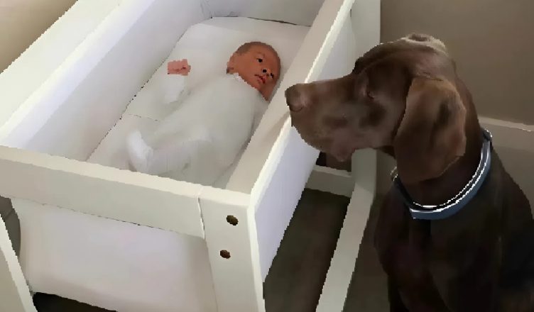 Jejich nově adoptovaný pes stál u postýlky a zuřivě okusoval její dřevěný okraj. Dřevo praskalo pod jeho zuby, jeho tělo bylo napjaté a pohyby působily zoufale.