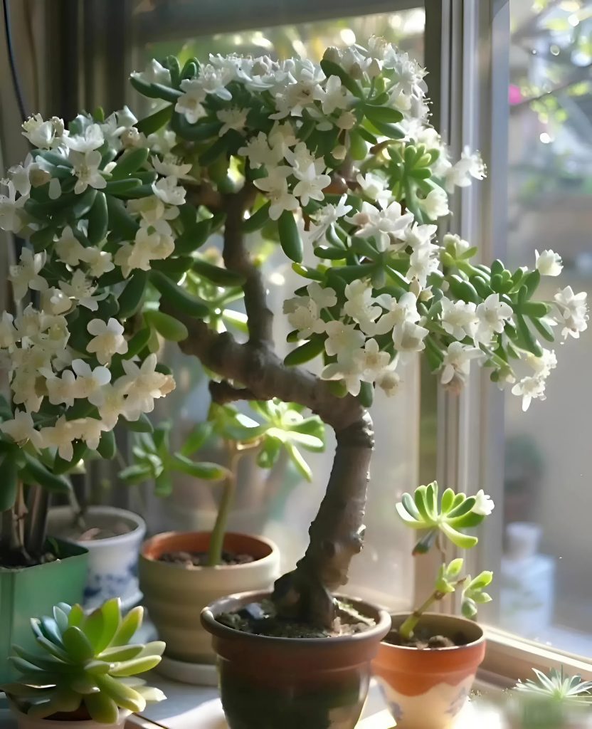 Néhány nappal később a pénzfám kivirágzott. Apró, finom virágok borították az ágakat, mintha kis csillagok lennének. Annyira váratlan és gyönyörű volt, hogy alig hittem el.