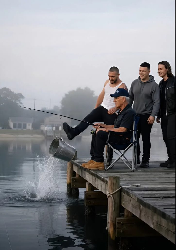 Jeden z nich prudce vykročil a kopl do kbelíku. Kov zazvonil o prkna a během vteřiny skončil i s rybami ve vodě.